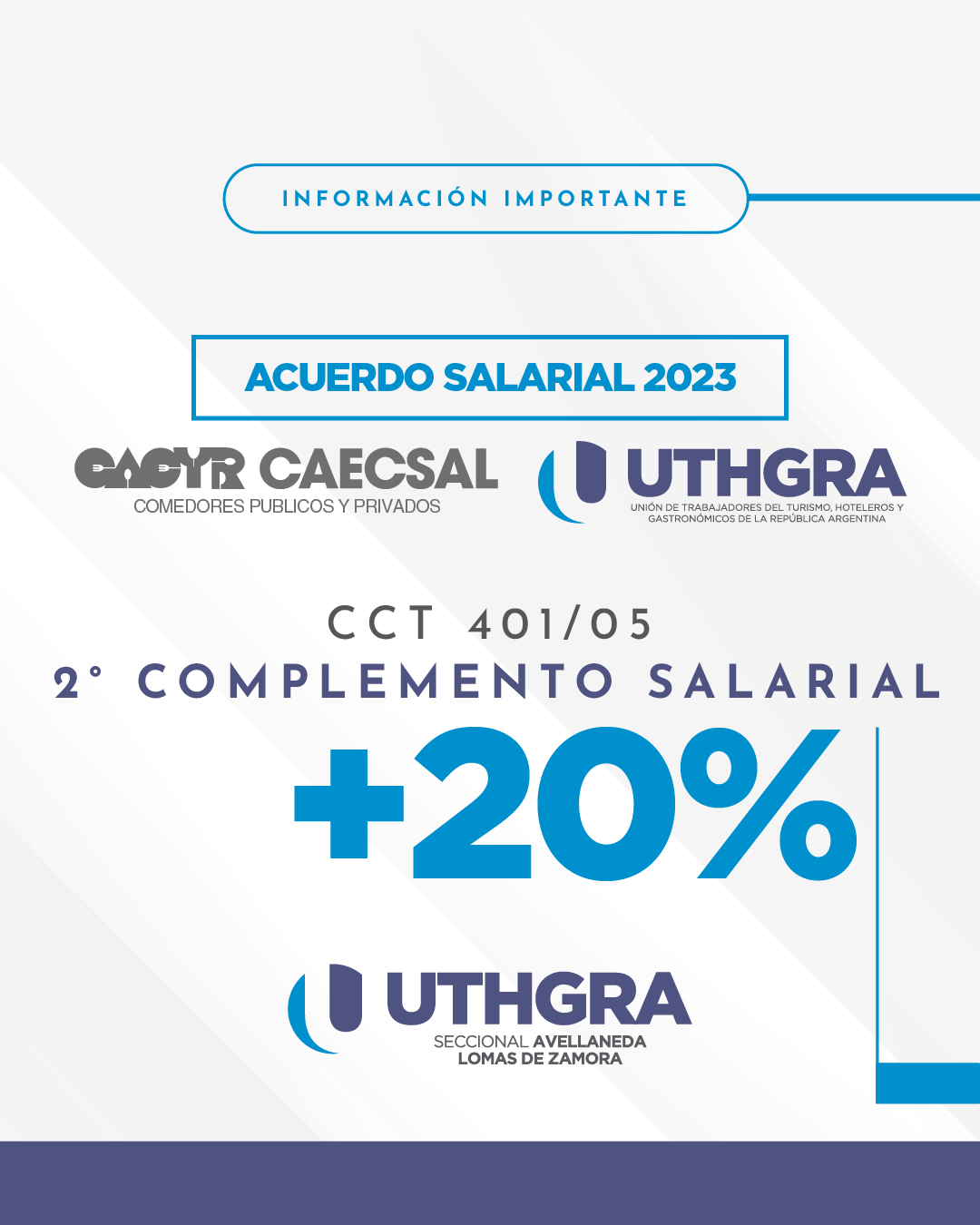 Se acordó el Pago de una Suma No Remunerativa No al Básico del 20% como segundo Complemento del acuerdo 23/24 abonándose a partir del salario del mes de Diciembre 2023 hasta abril 2024.