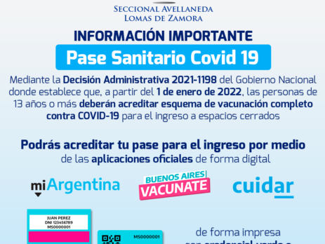 INFORMACIÓN IMPORTANTE PASE SANITARIO COVID 19 (más…)
